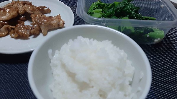 夜は豚の生姜焼き、かつお菜のおひたしを作って食べました。