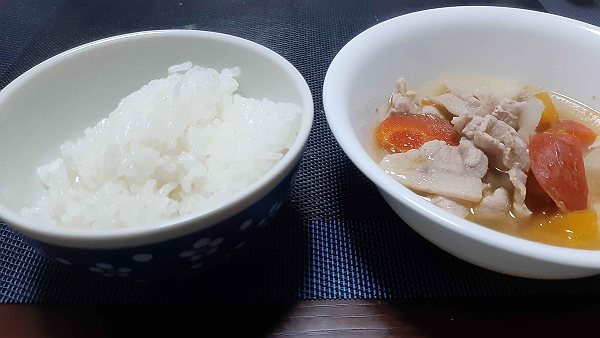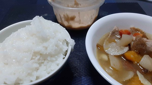 歯:昨日よりは噛めるようになってきた気がしますが、ポトフの豚肉をしばらく噛んでいると疲れてきます。