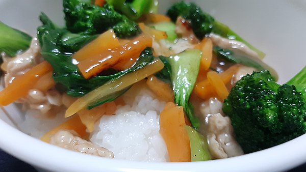 夜は中華丼を作って食べました。
