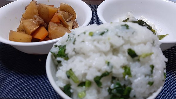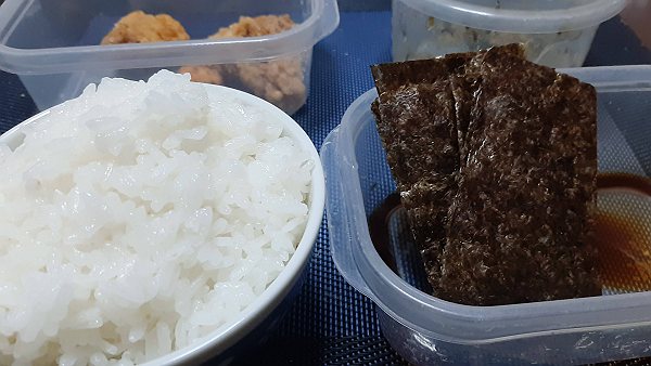夜はのり、昨日の唐揚げ、高菜漬けを食べました。健康に暮らしたいものです。