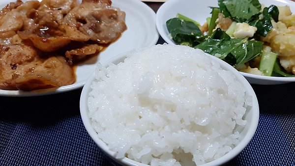 夜は豚の生姜焼き、小松菜のポテトサラダを作って食べました。