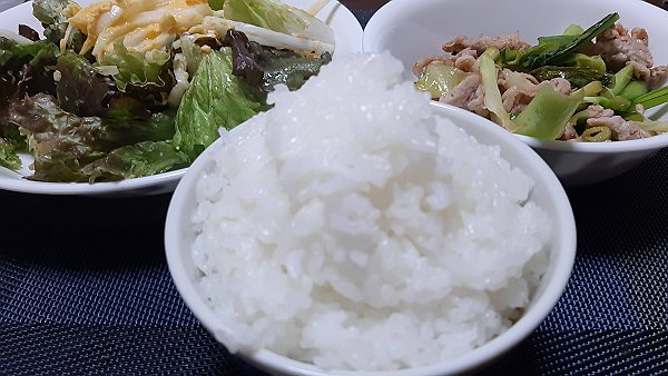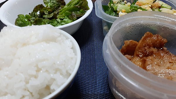 夜はレタス、昨日のポテトサラダ、生姜焼きを食べました。