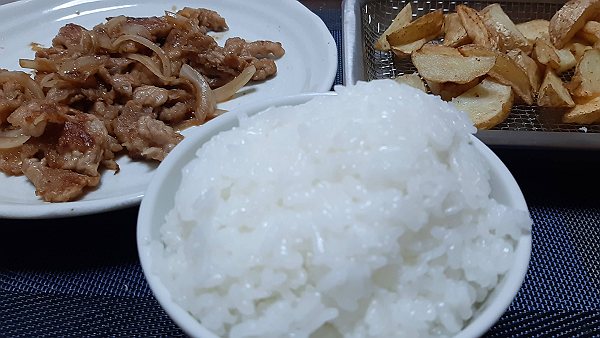 夜はフライドポテト、豚の生姜焼きを作って食べました。