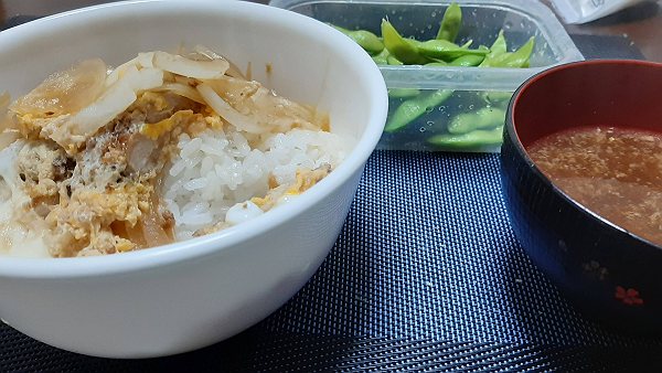 夜はカツ丼、枝豆を食べました。きゅうりのきゅうちゃん漬けを作る為にきゅうりを煮たのですが、長時間煮てしまってパリパリ感がなくなってがっかりしました。