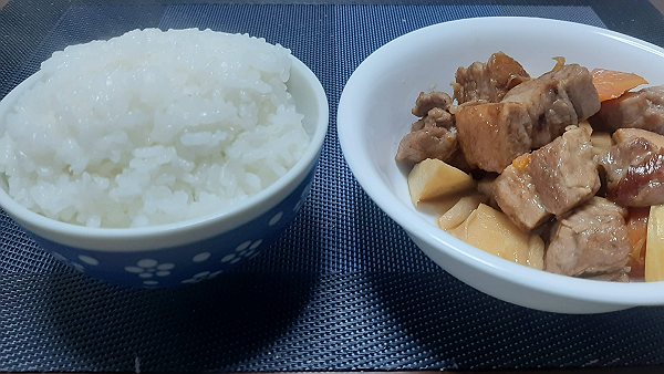 夜は豚の角煮とにんじんとたけのこの煮物を作って食べました。