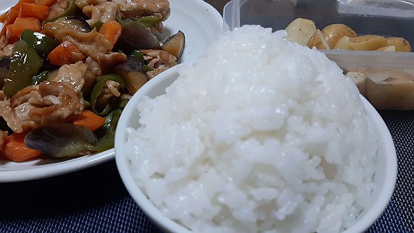 夜は豚肉とえのきの炒め、じゃがいもふかしを食べました。