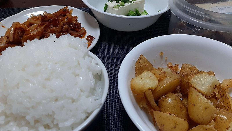 夜はプルコギ、冷奴、フライドポテトを食べました。