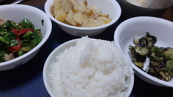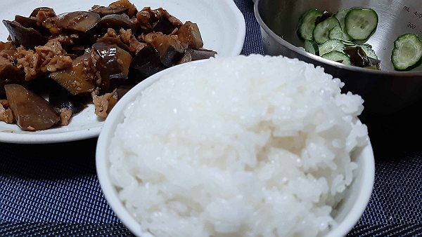 夜は麻婆茄子、きゅうりとわかめのお酢の物を作って食べました。