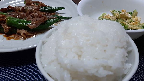 夜はオクラを豚肉で巻いたもの、ゴーヤーチャンプルーを作って食べました。