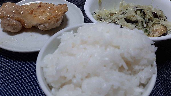 夜はチキンソテー、キャベツとナスの塩もみを作って食べました。