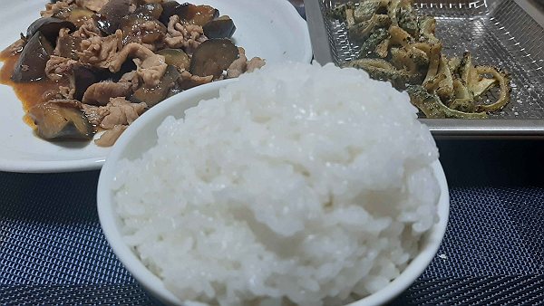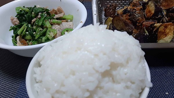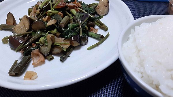 夜は空芯菜と豚肉とにんにくとナスの炒めを作って食べました。