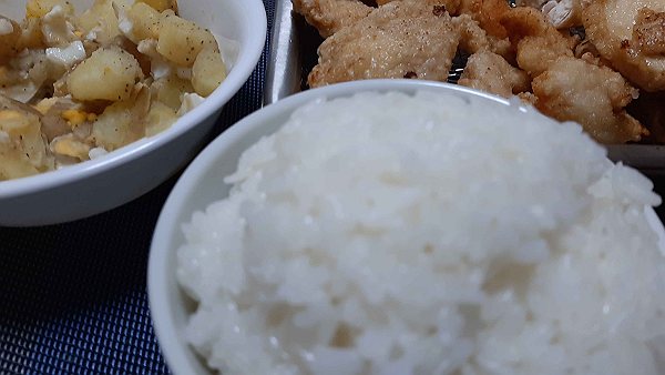 夜はポテトサラダ、胸肉の唐揚げを作って食べました。