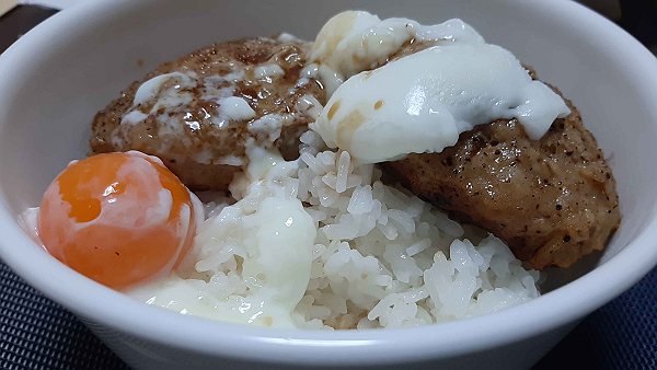 夜は昨日のハンバーグでロコモコ丼を作って食べました。